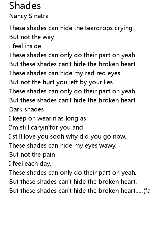 But these shades can't hide the broken heart.....(fading) |