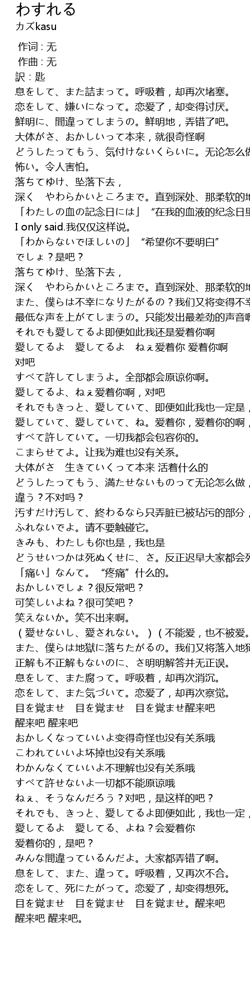 | [03:35.203] | 恋をして、死にたがって。恋爱了,却变得想死。 |