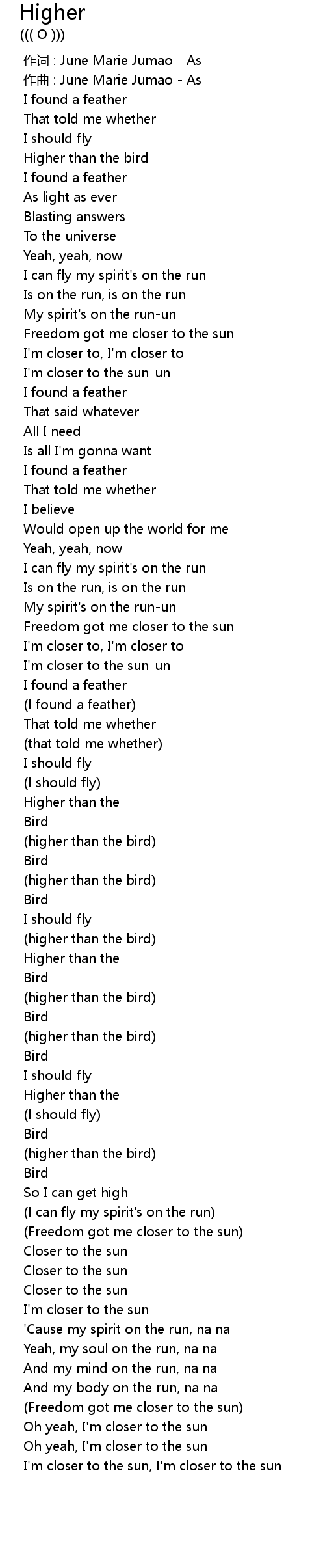 | [02:25.993] | (higher than the bird) |