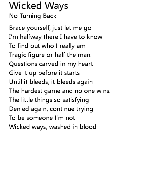 | Wicked ways, washed in blood |