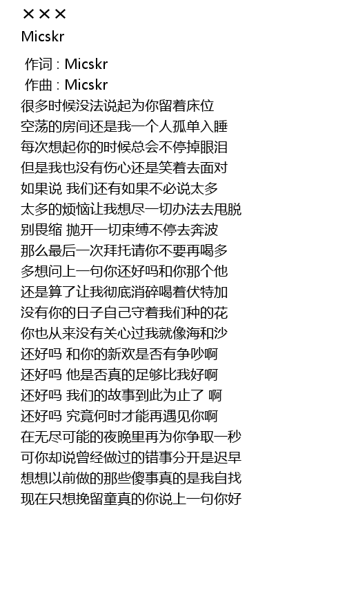 | [01:14.200] | 多想问上一句你还好吗和你那个他 |