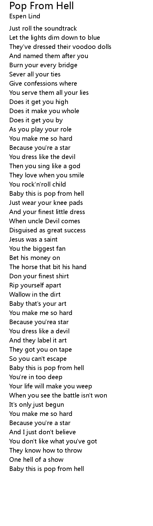 Baby this is pop from hell |