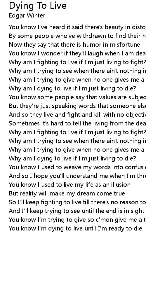 You know I'm dying to live until I'm ready to die |