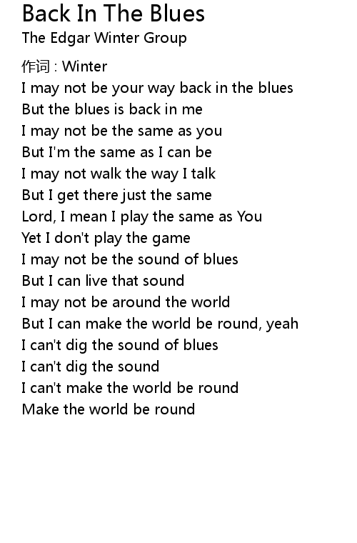 | 歌曲 | Back In The Blues |