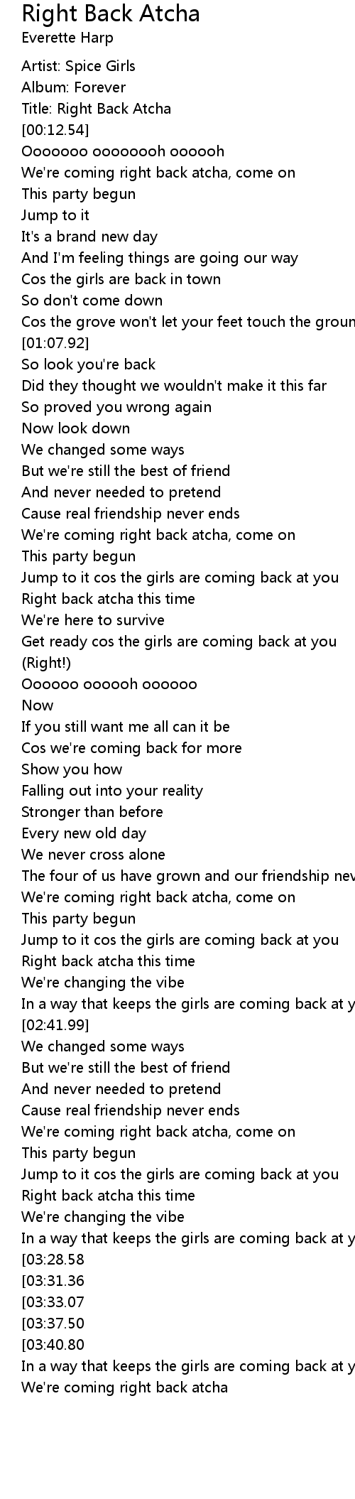 Title: Right Back Atcha |
