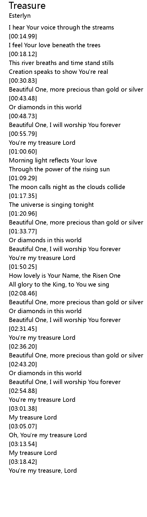 | [00:37.59] | Beautiful One, more precious than gold or silver |