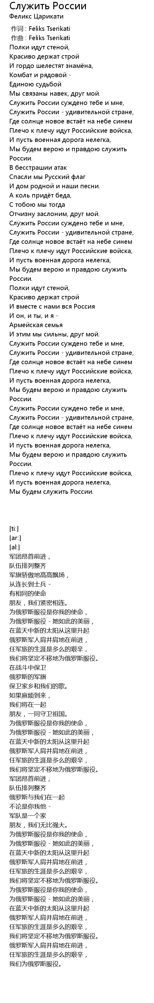 | [03:46.72] | 我们将坚定不移地为俄罗斯服役。 |