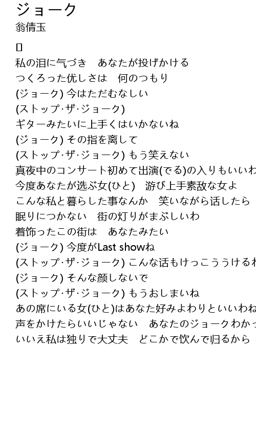 | 声をかけたらいいじゃない あなたのジョークわかってくれる | |