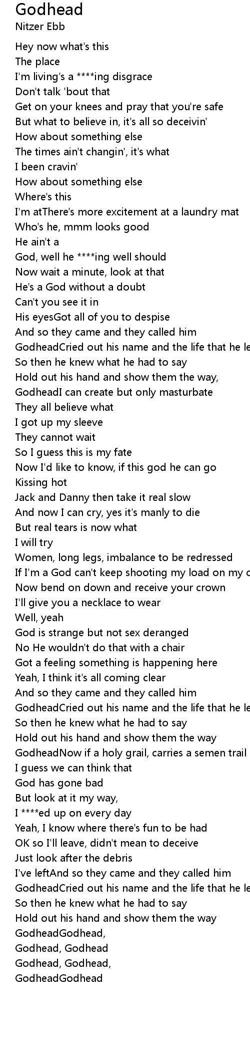 GodheadNow if a holy grail, carries a semen trail |
