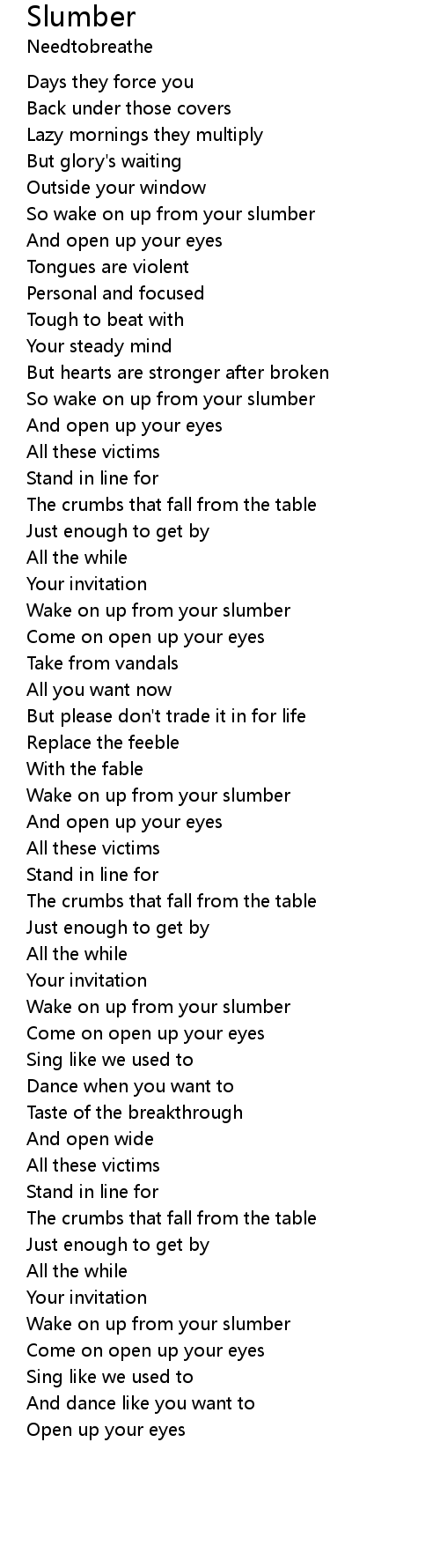 So wake on up from your slumber |