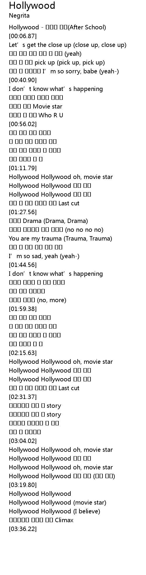 | [03:23.87] | Hollywood Hollywood (movie star) |