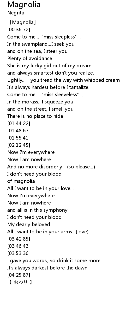| [00:38.72] | Come to me...“miss sleepless”, |