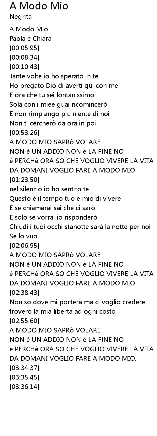 | [00:01.42] | A Modo Mio |