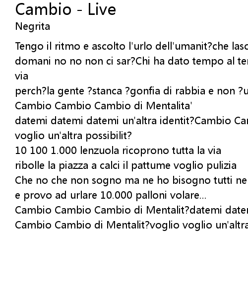 Cambio Cambio Cambio di Mentalit?datemi datemi datemi un'altra identit?Cambio Cambio Cambio di Mentalit?voglio voglio un'altra possibilit? |