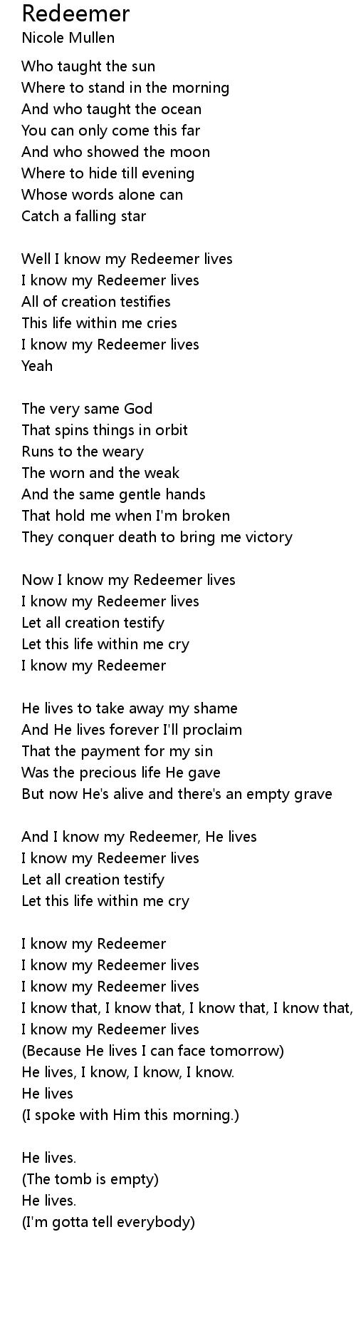 I know my Redeemer lives |