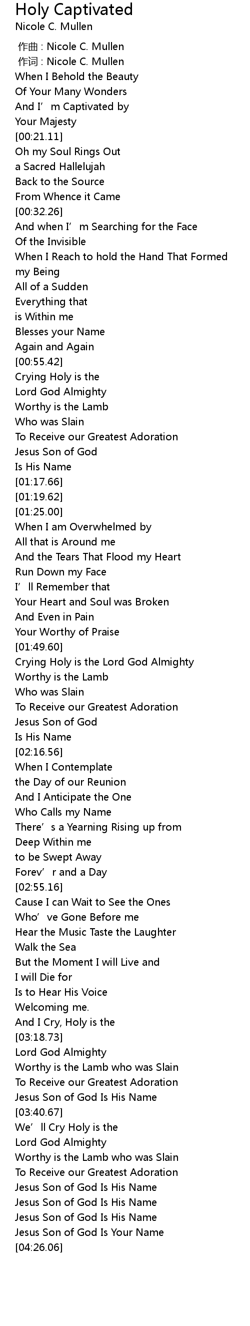 | [00:01.00] | 作词 : Nicole C. Mullen |