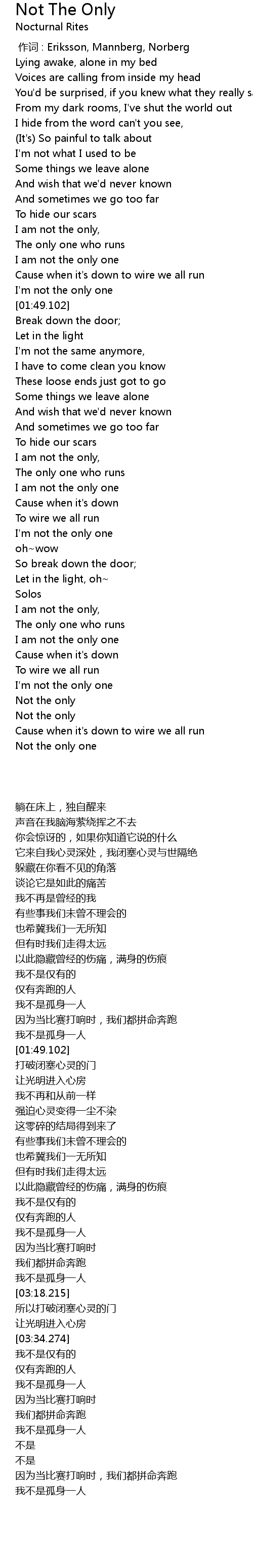 | 歌曲 | Not The Only |