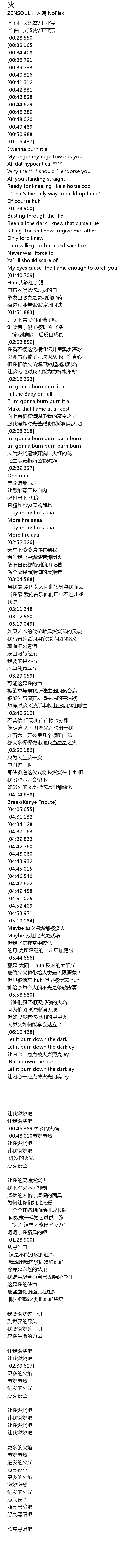 | [01:12.096][00:48.020] | More fire aaaa愈烧愈烈 |