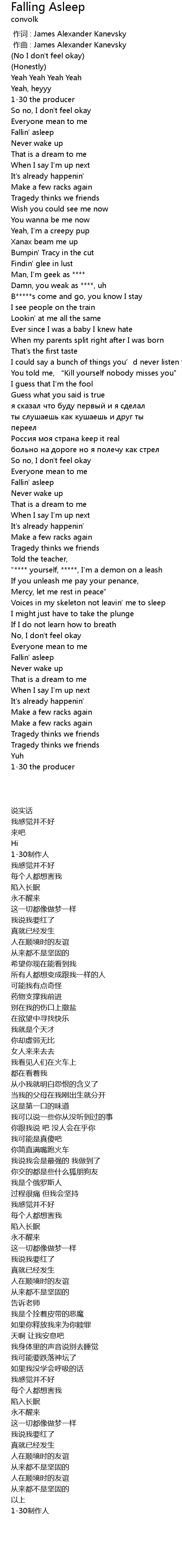 | [00:27.26] | So no, I don't feel okay |