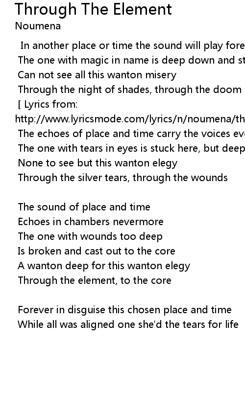 [ Lyrics from: http://www.lyricsmode.com/lyrics/n/noumena/through_the_element.html ]