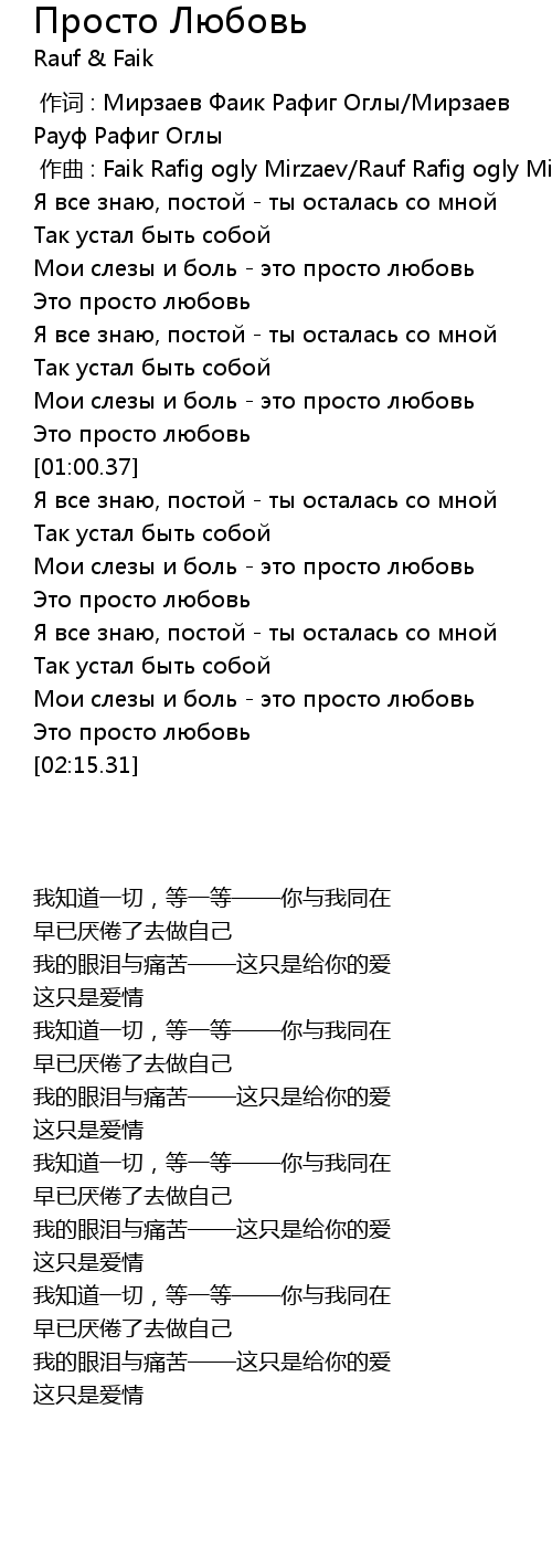 | [01:38.00] | Мои слезы и боль - это просто любовь |