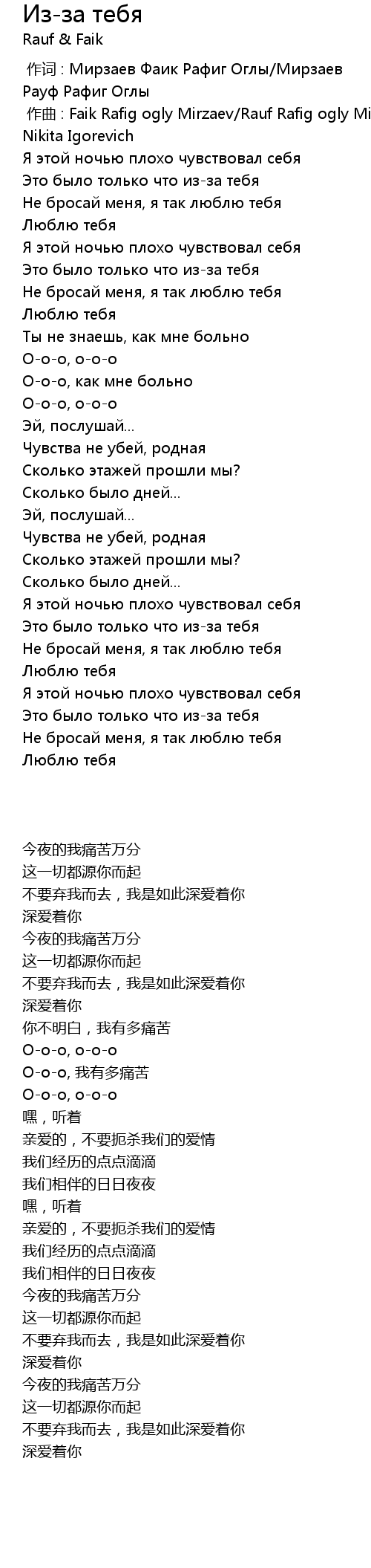 | [00:01.000] | zuo qu : Faik Rafig ogly Mirzaev Rauf Rafig ogly Mirzaev Baranov Nikita Igorevich |