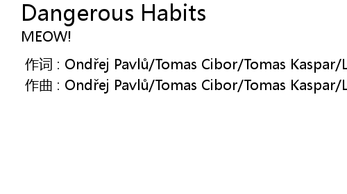 [00:00.000] 作曲 : Ondřej Pavlů/Tomas Cibor/Tomas Kaspar/Lukáš Vincour