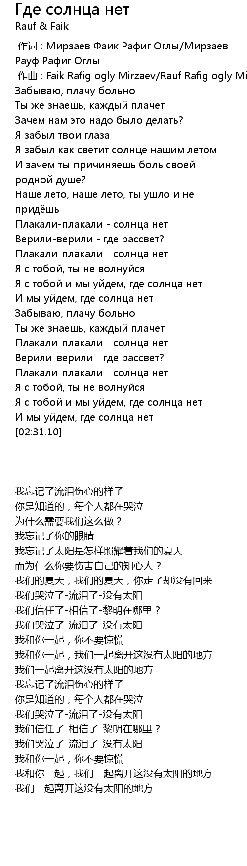 | [00:00.000] | 作词 : Мирзаев Фаик Рафиг Оглы/Мирзаев Рауф Рафиг Оглы |