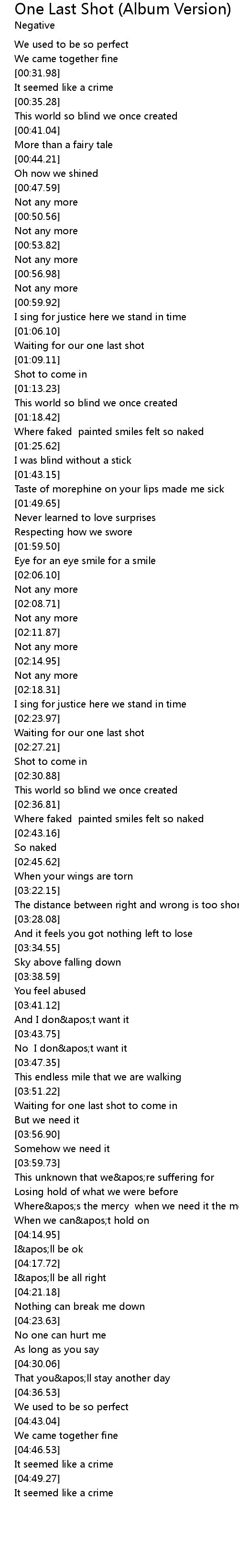 | [00:26.67] | We used to be so perfect |