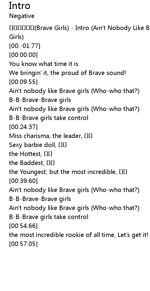| [00:-07.04] | Brave Girls Intro Ain' t Nobody Like Brave Girls |