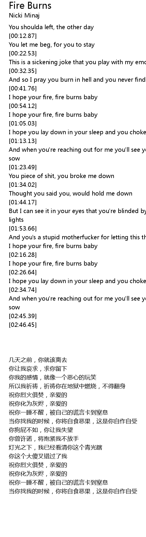 I hope your fire, fire burns baby |