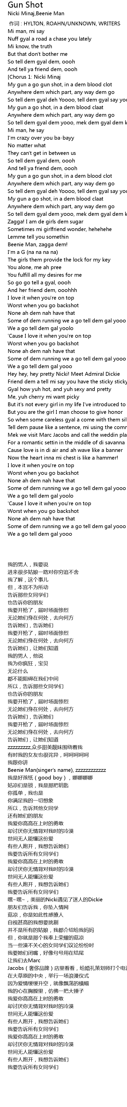 | [02:22.820] | Beenie Man(singer's name), zzzzzzzzzzzz |