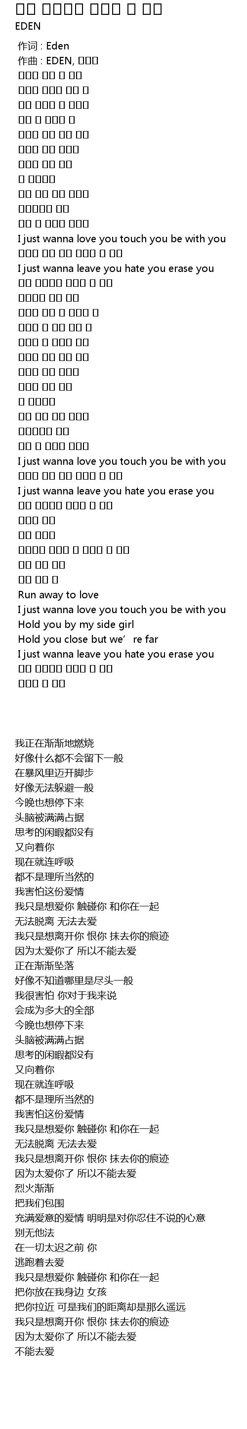 | [02:42.092] | 我只是想爱你 触碰你 和你在一起 |