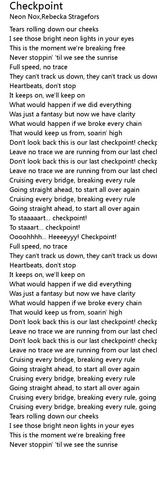 | [01:25.16] | Don' t look back this is our last checkpoint! checkpoint! |