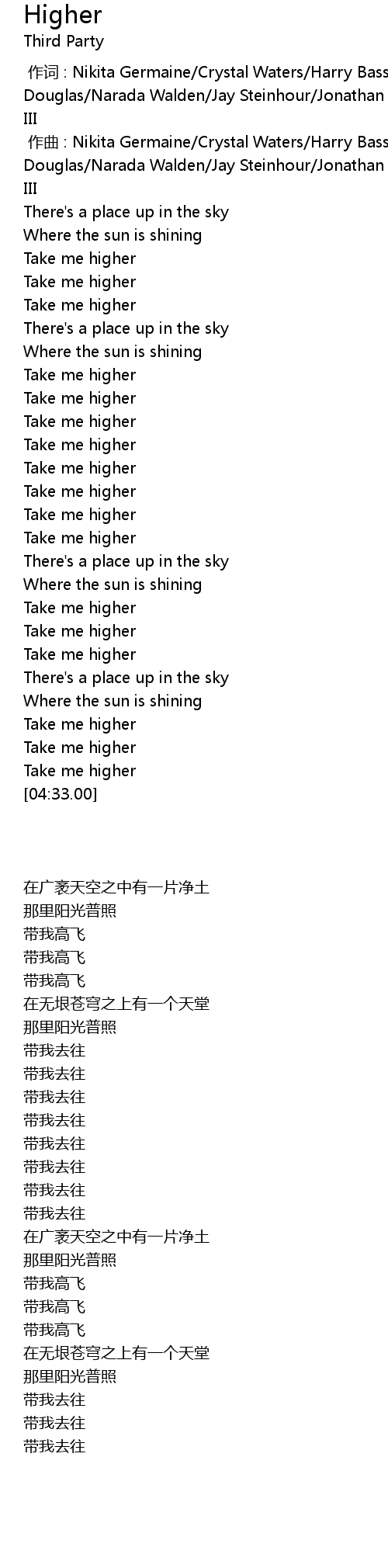 | [04:23.61] | Take me higher |