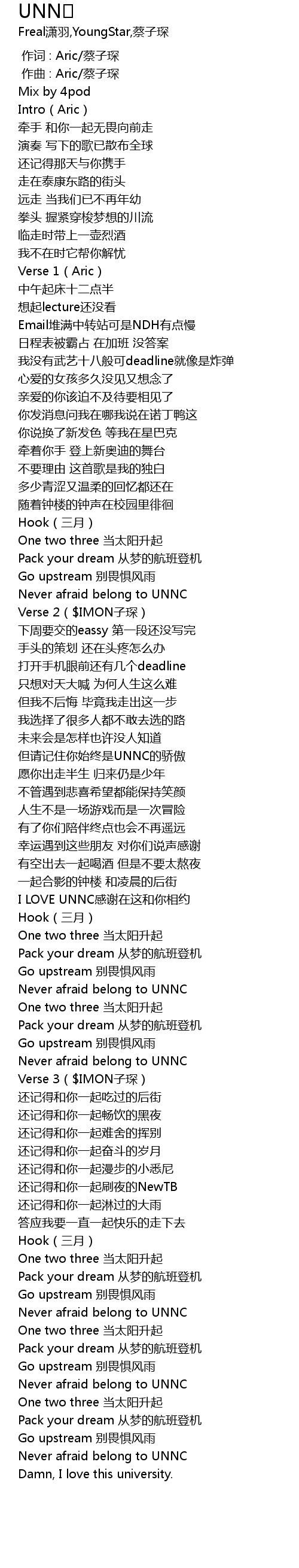 | [01:48.45] | I LOVE UNNC gǎn xiè zài zhè hé nǐ xiāng yuē |