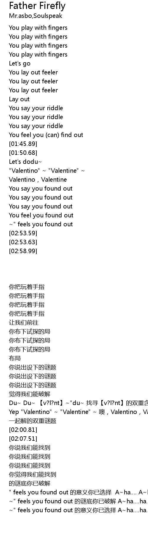 | [01:45.89] | Du~ Du~ 【v?l?nt】~"du~ 找寻【v?l?nt】的双重含义 |