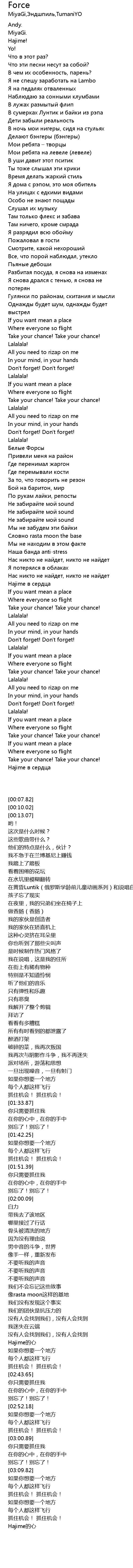 | [00:30.50] | В сумерках Лунтик и байки из рэпа |
