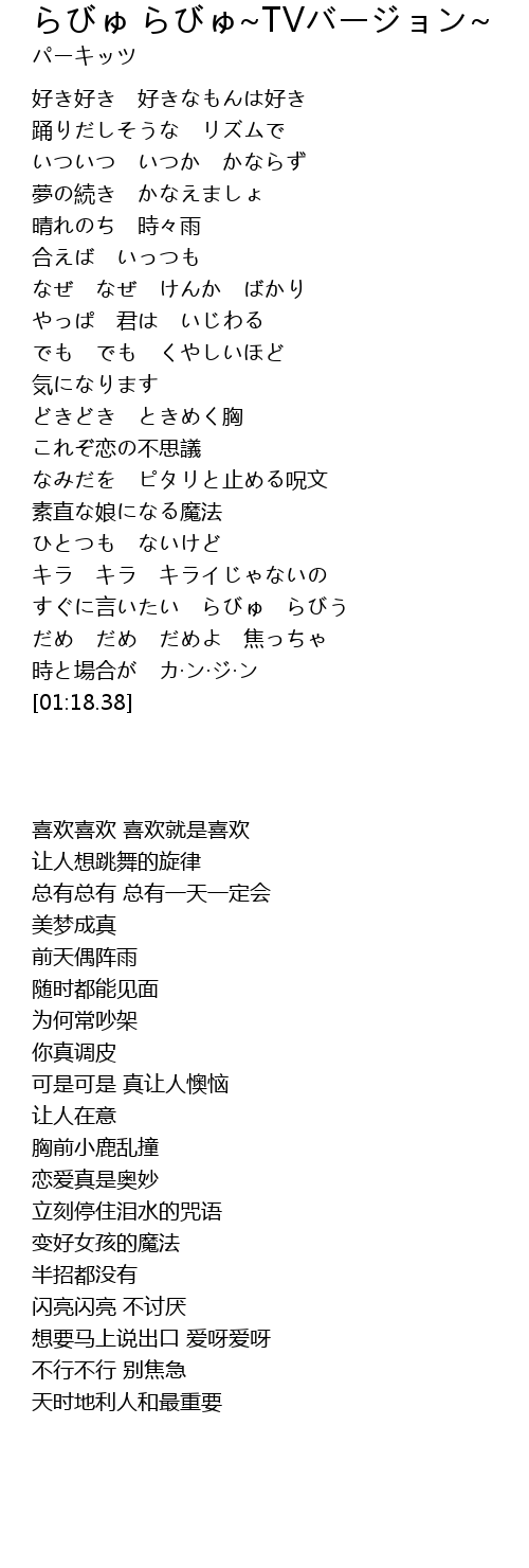 | [01:07.56] | すぐに言いたい らびゅ らびう |