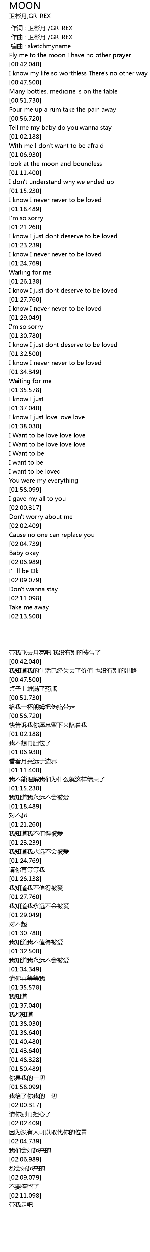 | [00:00.000] | 作词 : 卫彬月 /GR_REX |