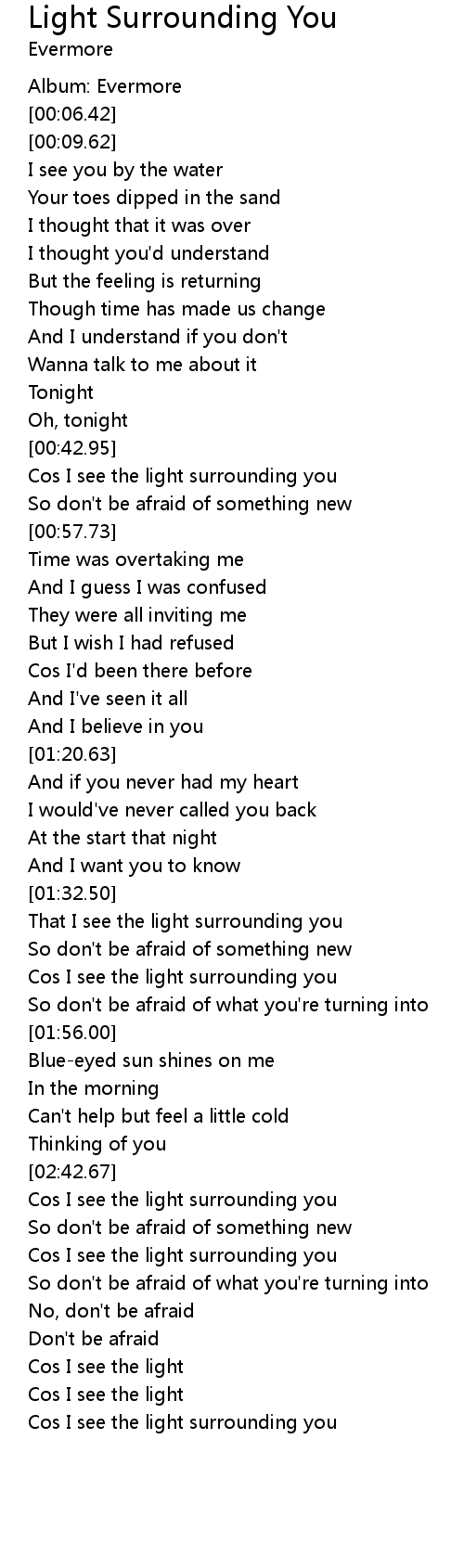| [03:00.10] | So don't be afraid of what you're turning into |