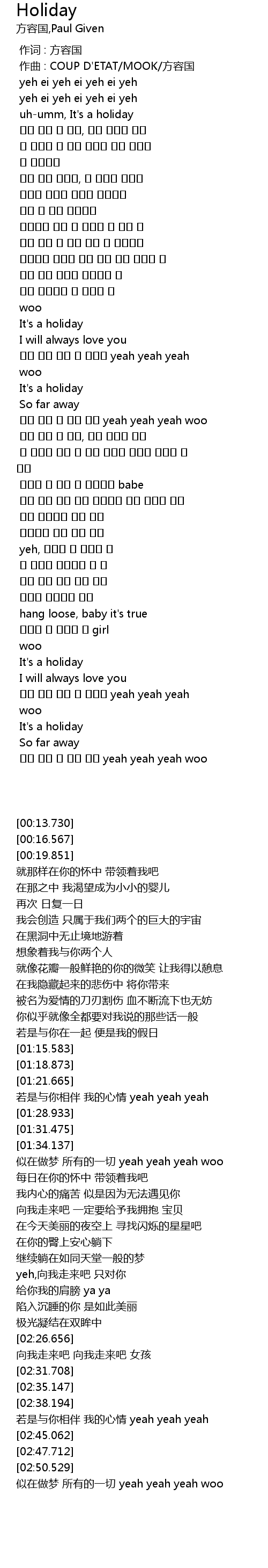 | [01:12.682] | 若是与你在一起 便是我的假日 |