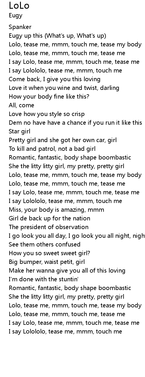 [02:02.31] Lolo, tease me, mmm, touch me, tease my body