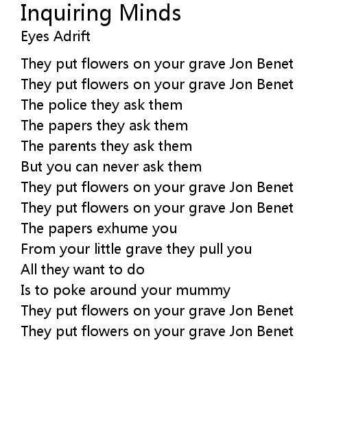 | They put flowers on your grave Jon Benet | |
