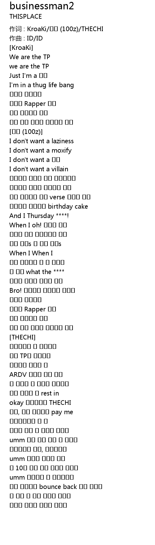 | 作词 : KroaKi/백지 (100z)/THECHI | |