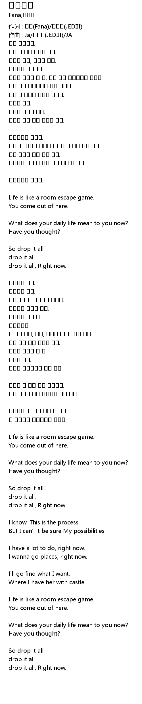 | 作词 : 화나(Fana)/제다이(JEDIII) | |