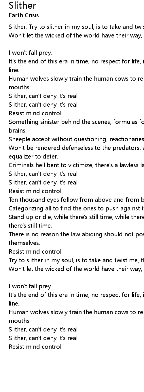 Slither. Try to slither in my soul, is to take and twist me, their only goal. |