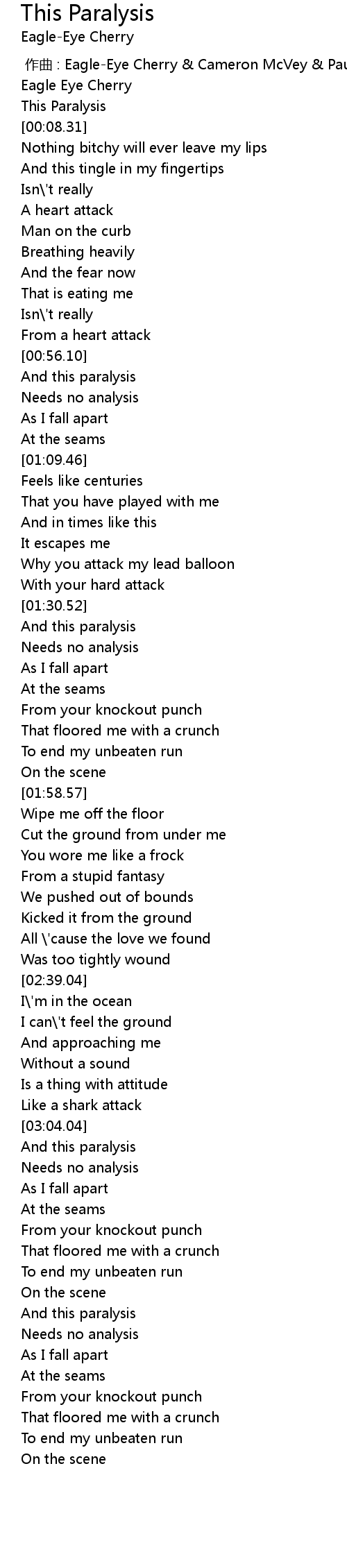 | [03:02.35] | Like a shark attack |