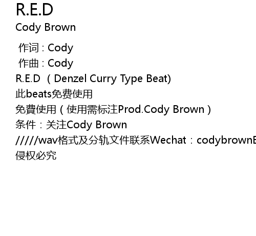 | [00:05.349] | 免費使用(使用需标注Prod.Cody Brown) |