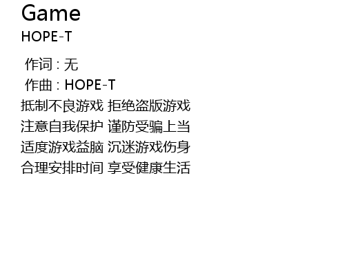 | [00:09.191] | 适度游戏益脑 沉迷游戏伤身 |